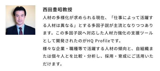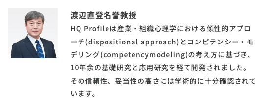 ■HQ Profileは組織心理学の専門家である慶應義塾大学経営管理研究科渡辺直登名誉教授、中部大学経営情報学部経営総合学科西田豊昭教授と開発しています。